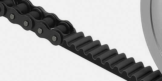 No. Mtechnics belt drives use an advanced polyurethane synchronous belt system with carbon-fiber tensile cords, engineered for high performance and long-lasting durability. The carbon-fiber reinforcement allows higher horsepower handling while keeping the system compact, lightweight, and flexible.