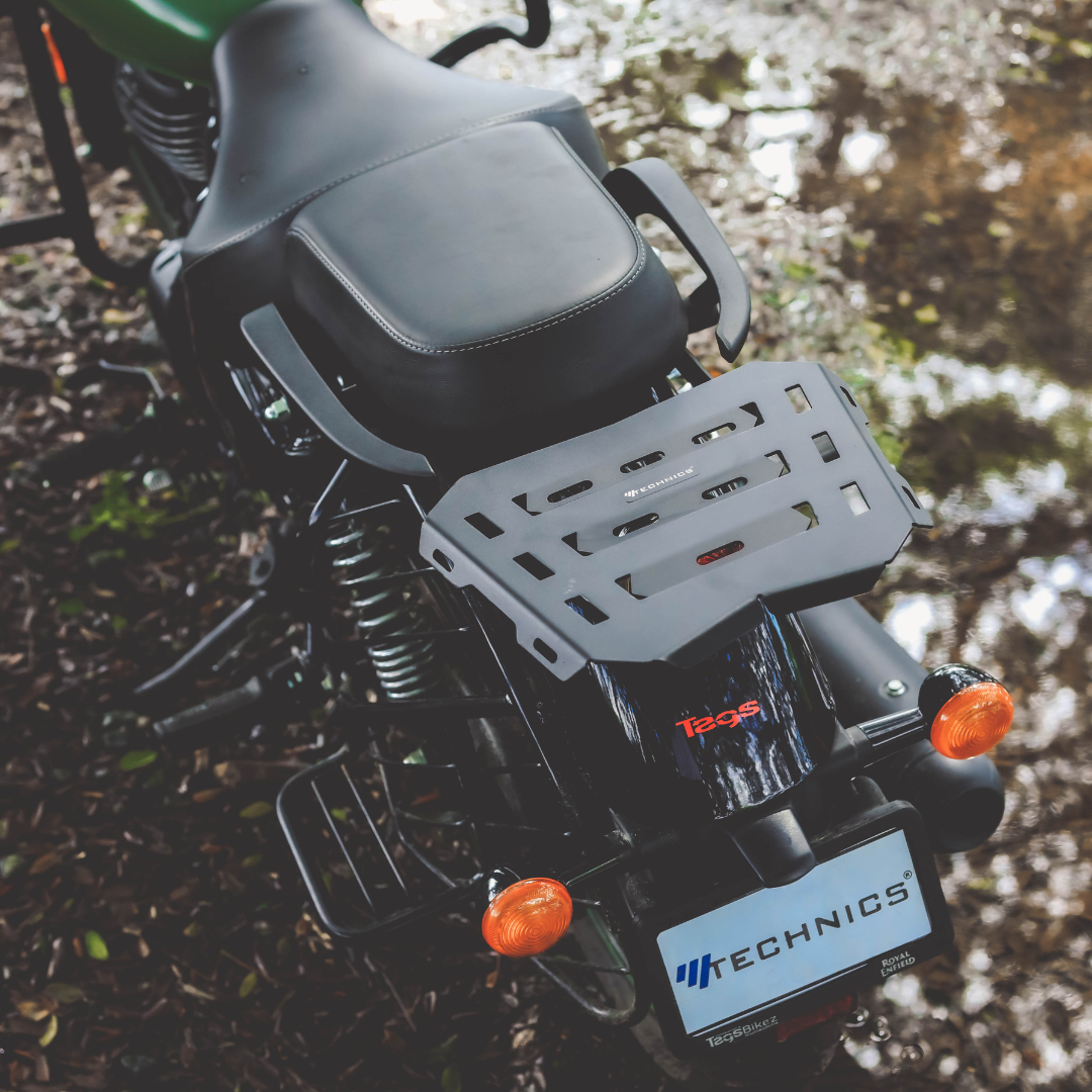 Upgrade your Royal Enfield Meteor 350 with the Mtechnics Luggage Carrier, engineered for riders who demand strength, durability, and premium design. Made from precision-cut mild steel, this carrier offers a secure and stable platform for your top box, tail bag.